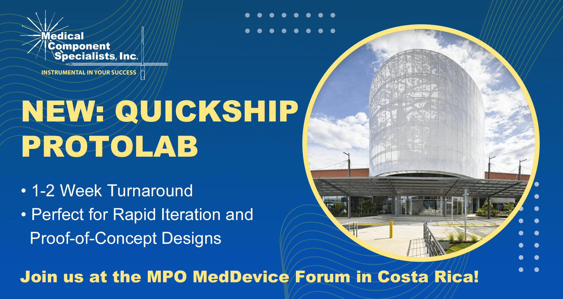 DetailsMedical Component Specialists is looking forward to the upcoming MPO MedDevice Forum, set in the scenic Costa Rica Convention Center, taking place from April 24th to 25th.